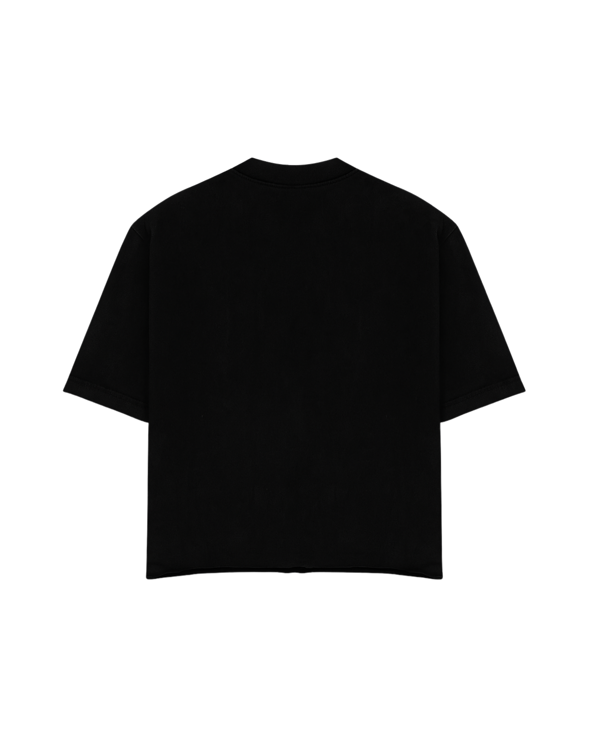 Black short-sleeved T-shirt. Slightly oversized fit in medium-weight cotton. 3cm round neck. NOTFROMDUBAI graphic logo.
